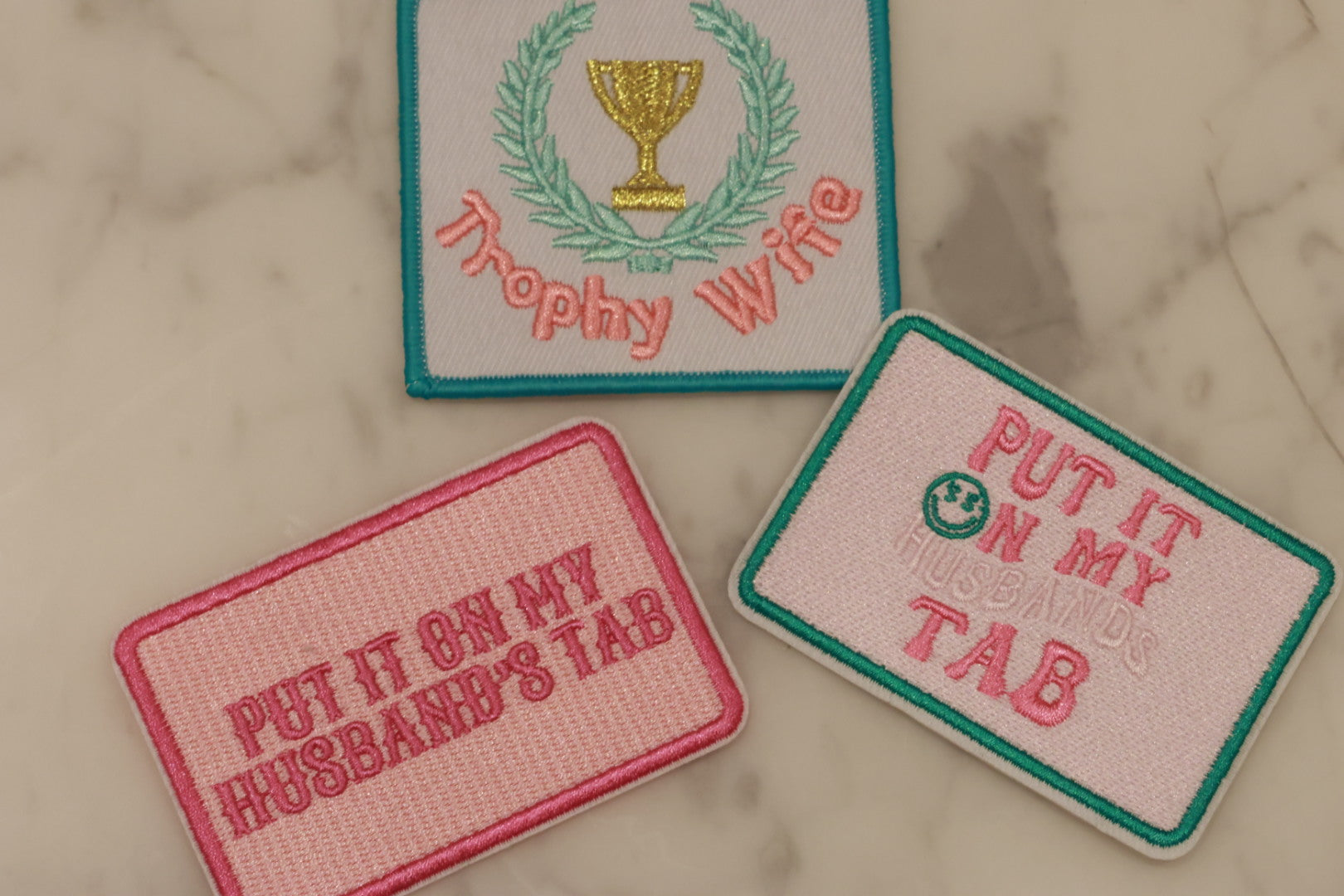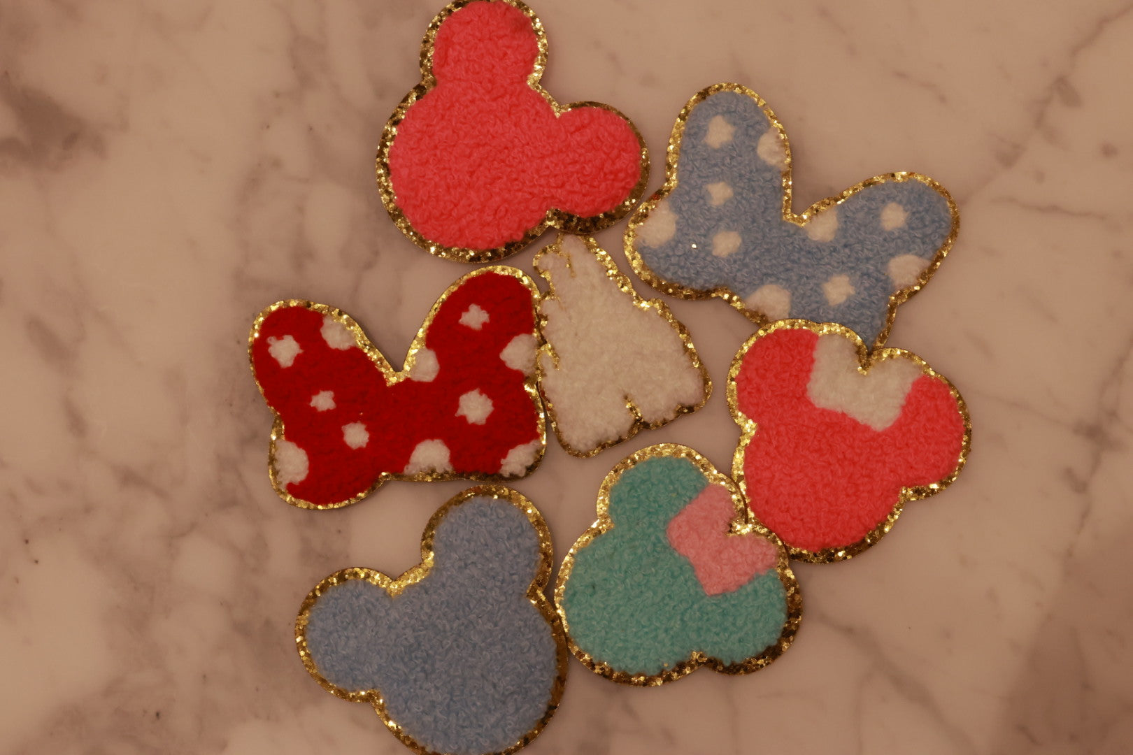 ALL PINK PATCHES ARE SMALL UNLESS IT IS AN INITAL OR DISCO BALL